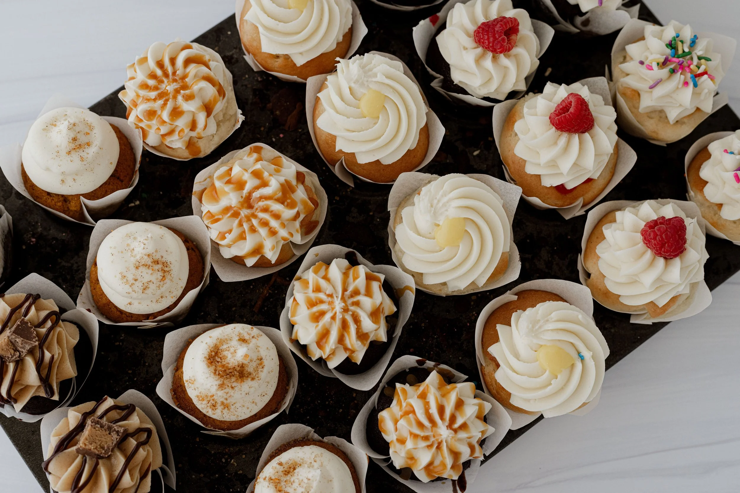 Champagne cupcake filled with Stonewall Kitchen's raspberry peach jam topped with champagne buttercream